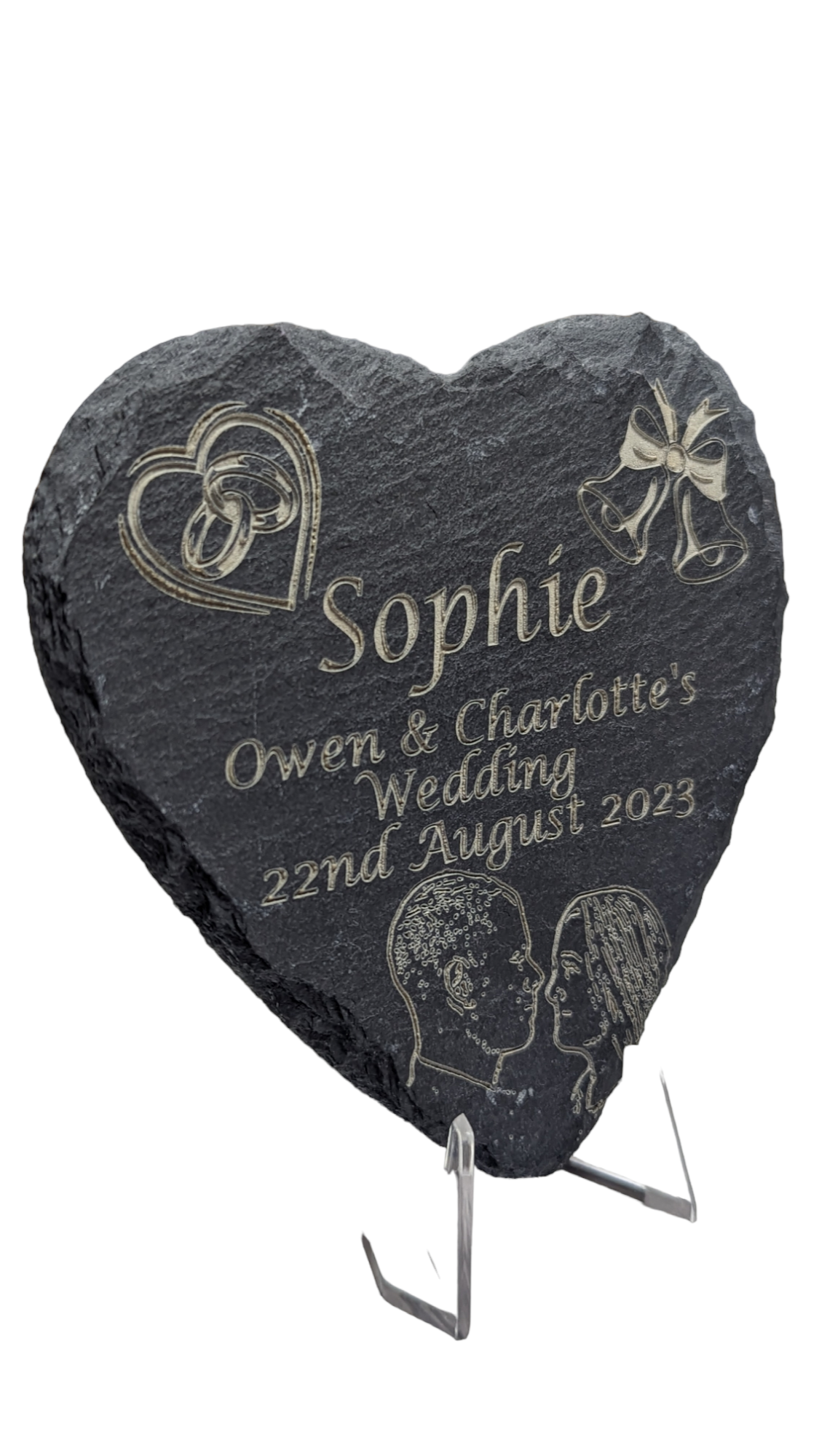 Each slate can have their own guests names as well as words to remember your special day forever. (Includes stand)