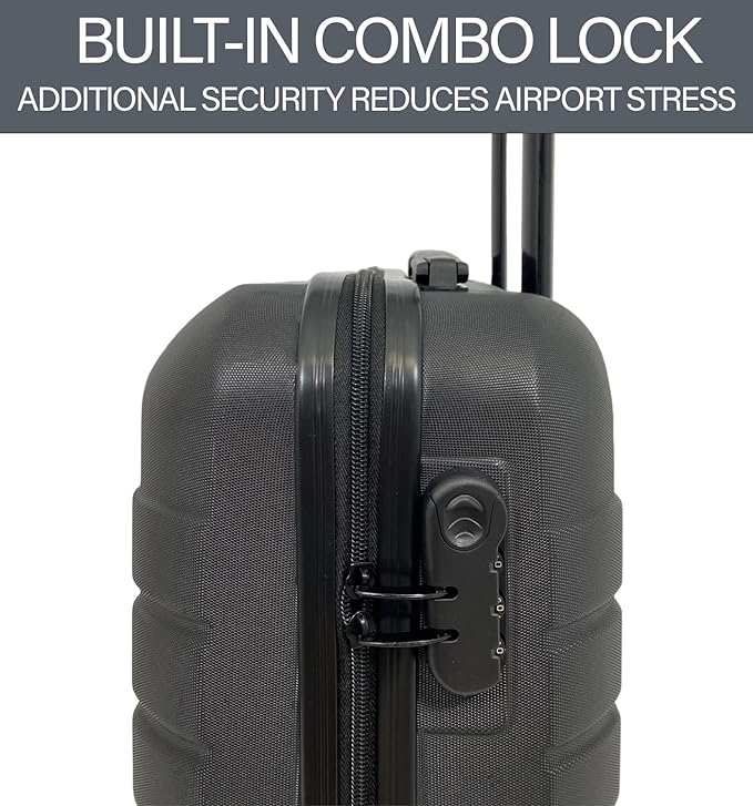 - BUILT-IN COMBO LOCK – Travel stress-free knowing your luggage is protected with the built-in combination lock