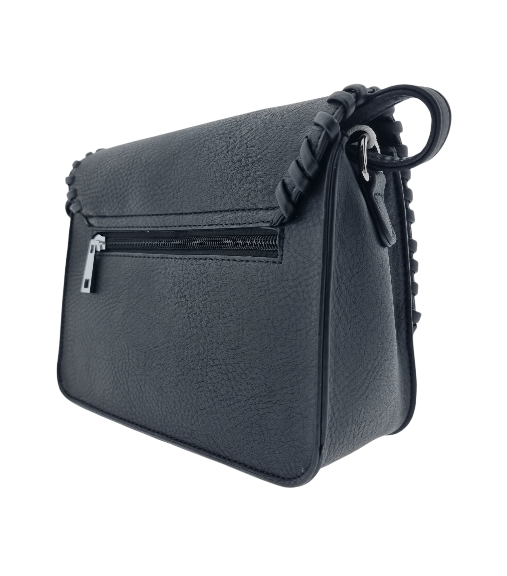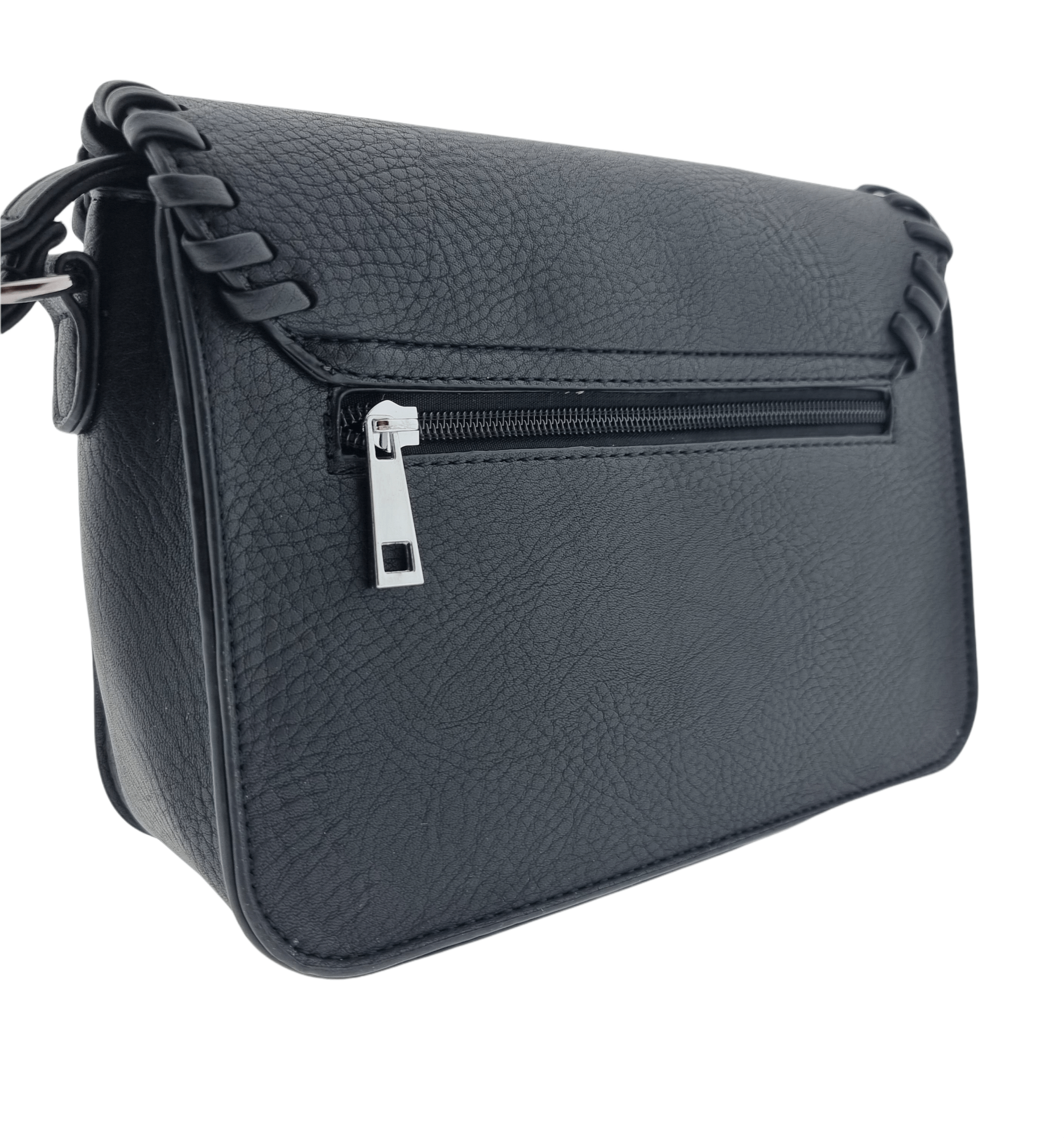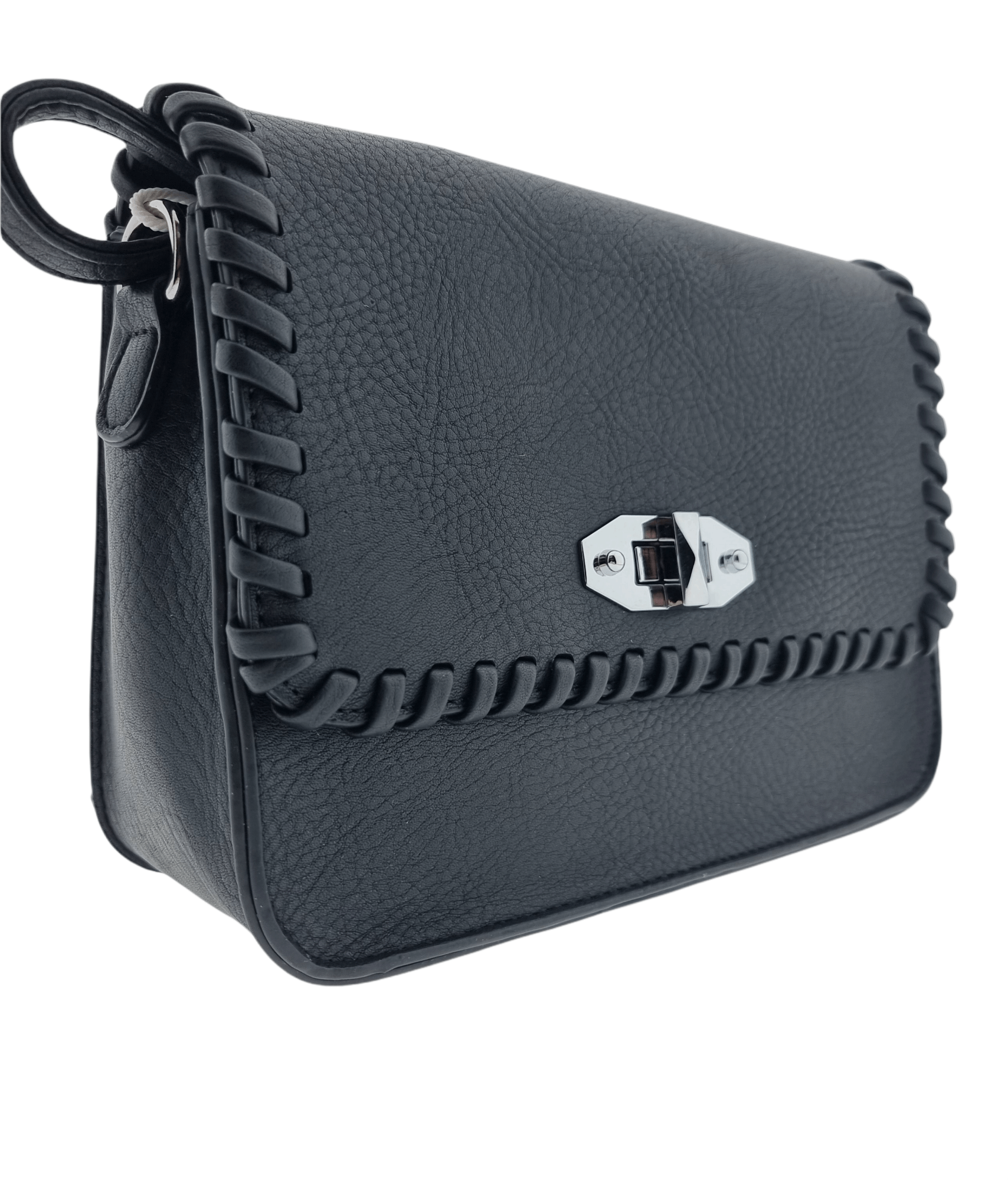 Cross Body Bag, Twist-Lock, Hemmed Flap, Zip Pocket Rear Black