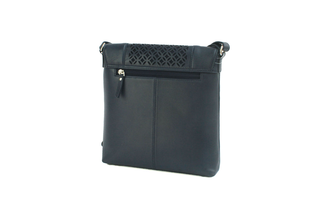 Finest Soft Leather Crossbody Bag with Victorian cut design detailing panel-Navy/Navy