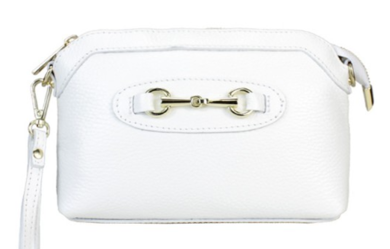 Fine Italian Full Grained Leather Clutch Cross Body Bag -Juliana Pure White