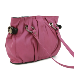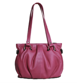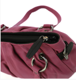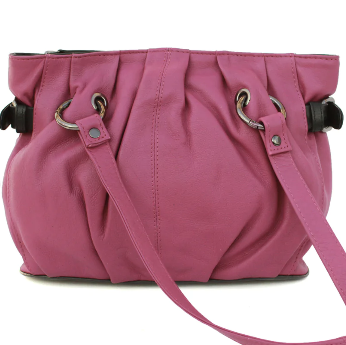 Genuine Leather handbag with metal ring strap detail Magenta Fuchsia CLEAR