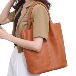 Genuine Leather Large Soft Tote Shoulder Bag in Bag Donna Stone