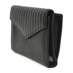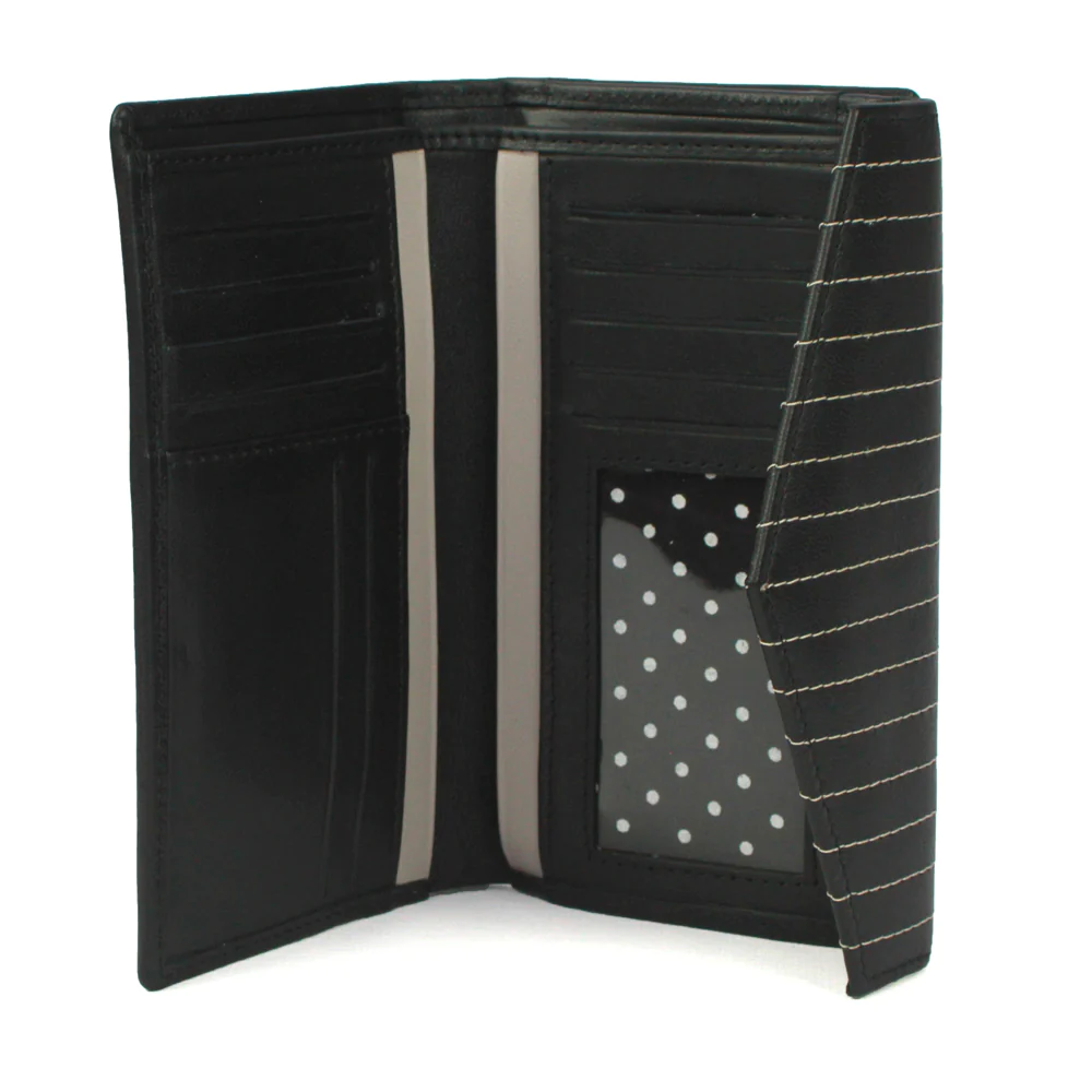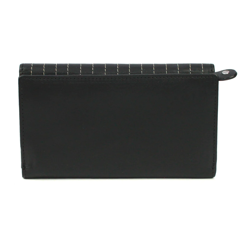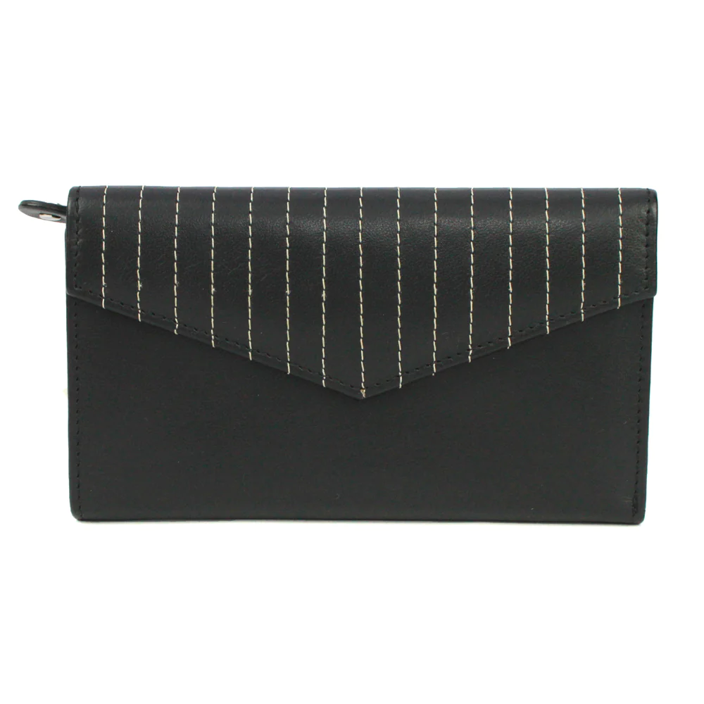 Genuine Soft Leather Purse RFID protection envelope style design and stitching detail Black