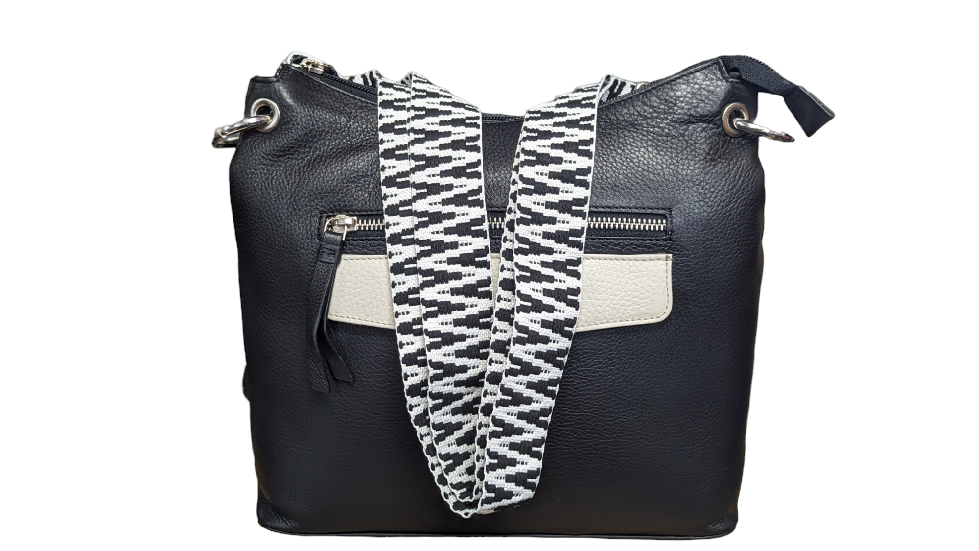 High Quality Genuine Leather Shoulder or Crossbody Bag, Denise Black & Stone