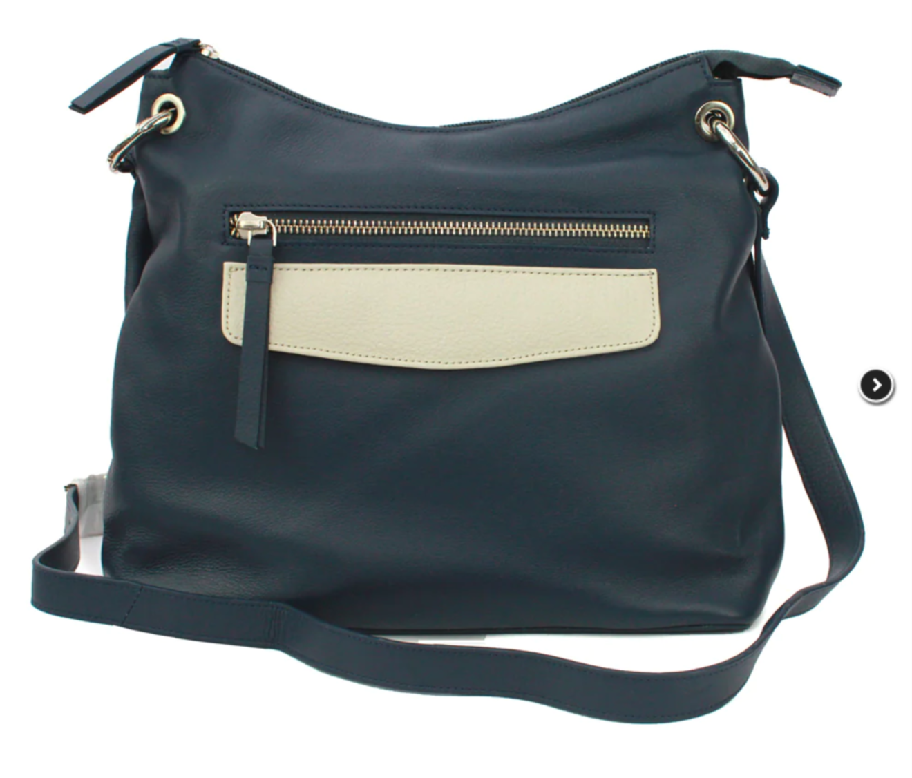 High Quality Genuine Leather Shoulder Bag, Denise Navy & Stone