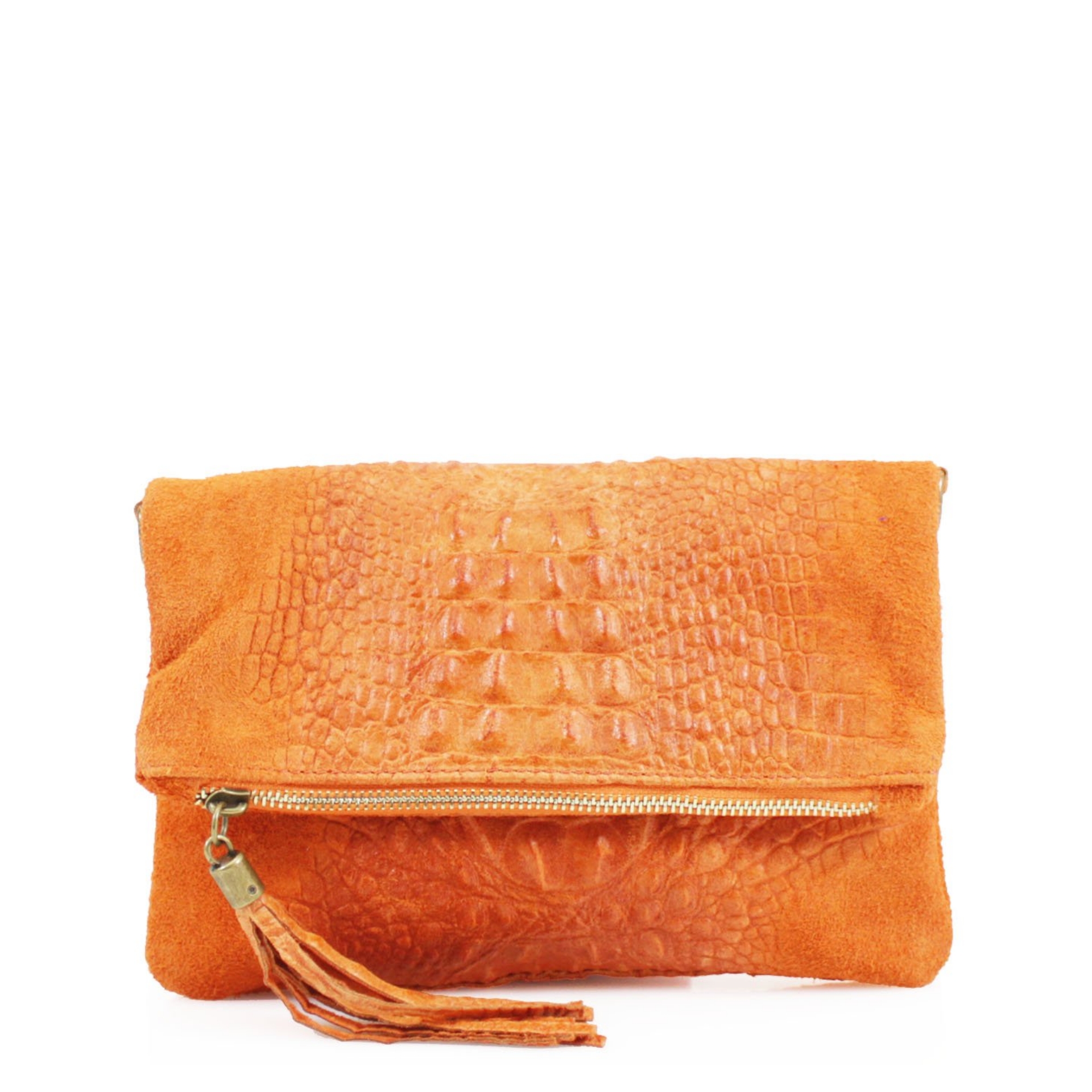 Italian Designer Foldover Croc Print Suede Leather Clutch bag – Swolit