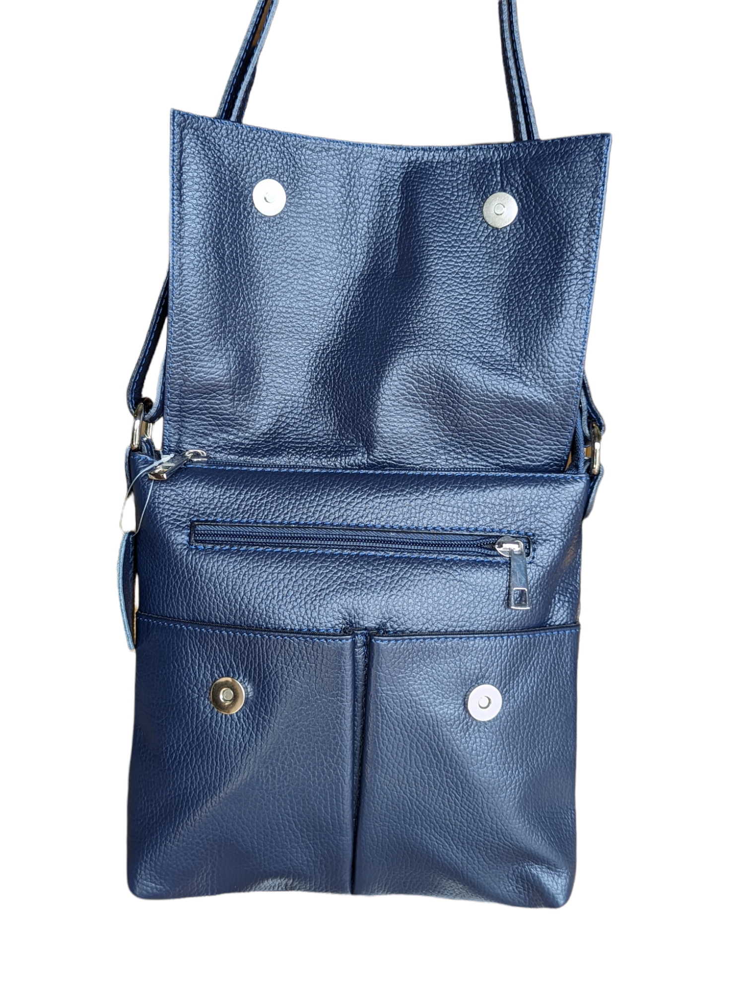 Italian Designer Leather Clutch Crossbody Monica- Navy