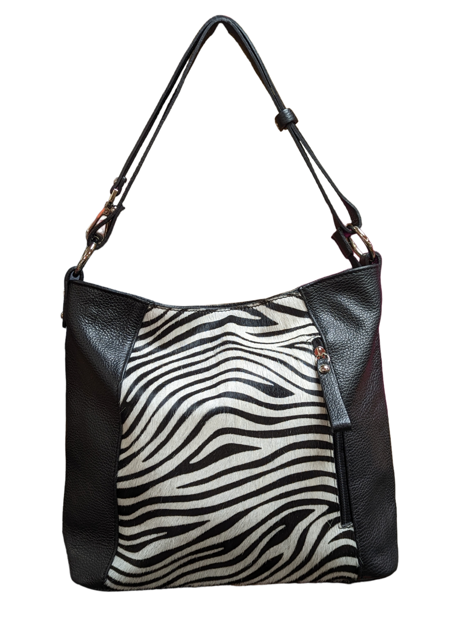 Italian Designer Leather Handbag with Adjustable Strap- Swolit Della Zebra Print
