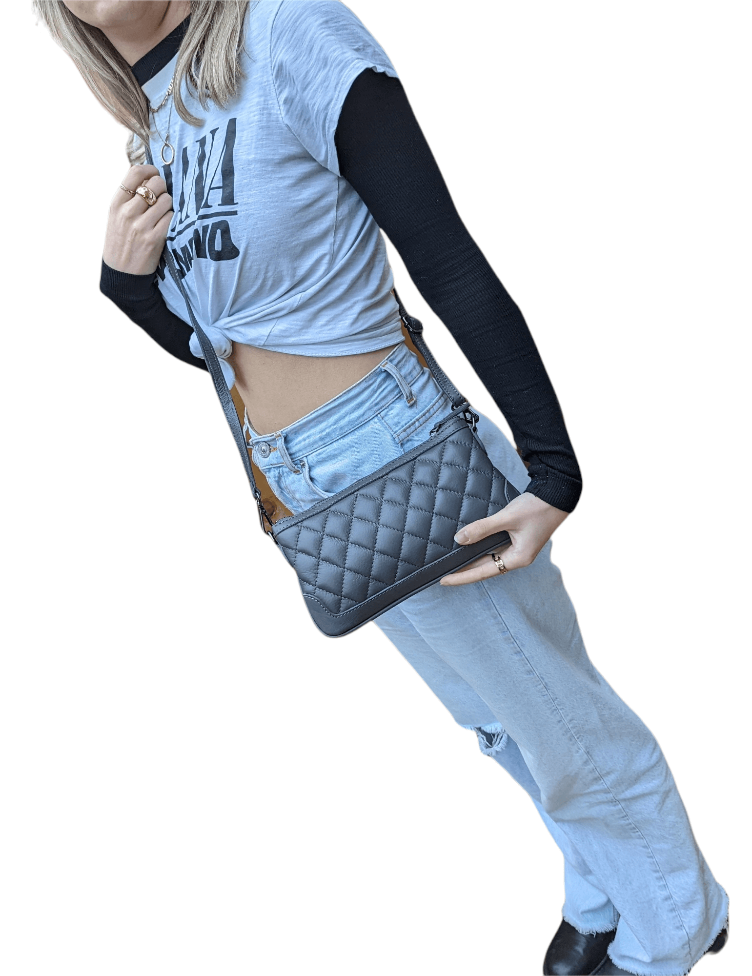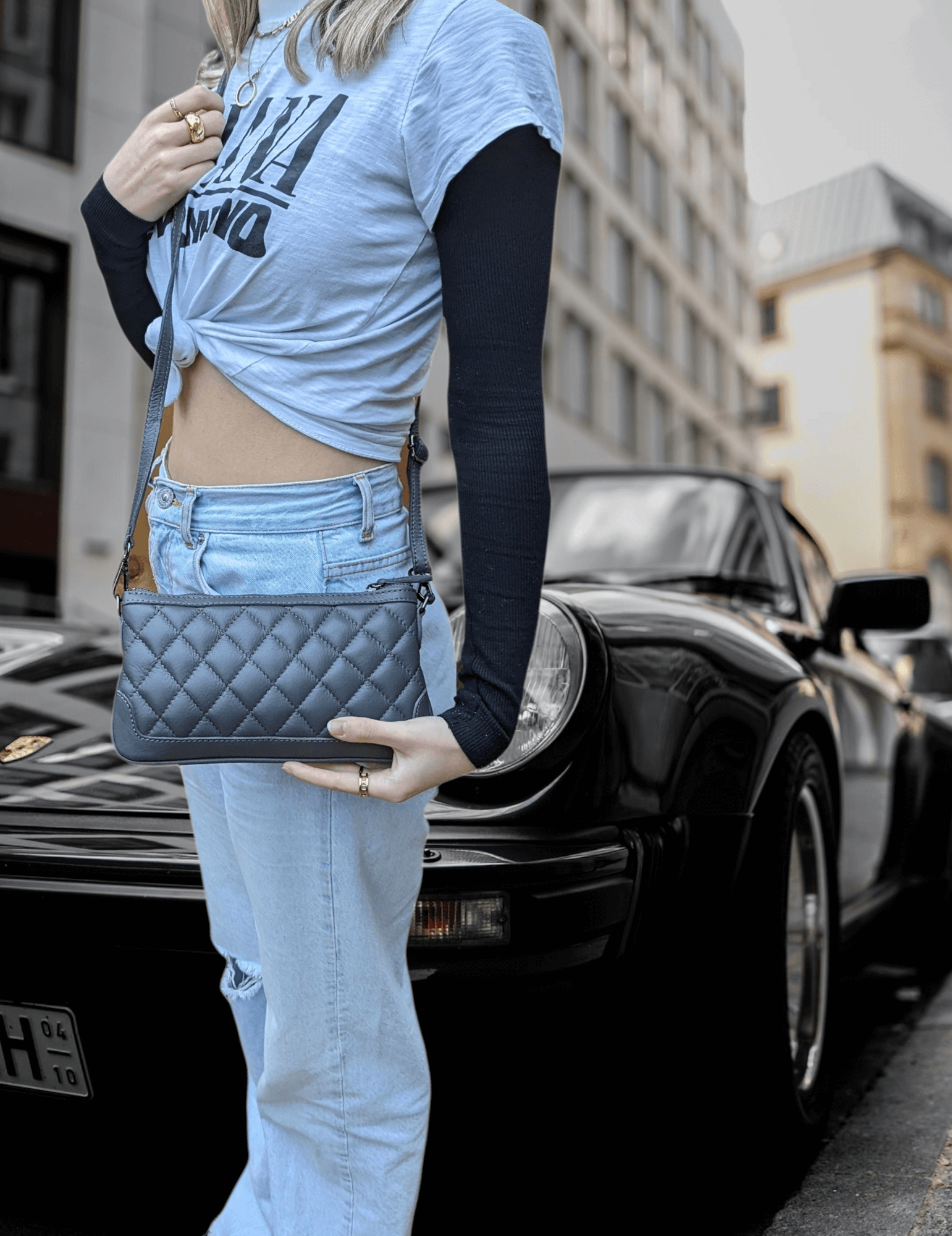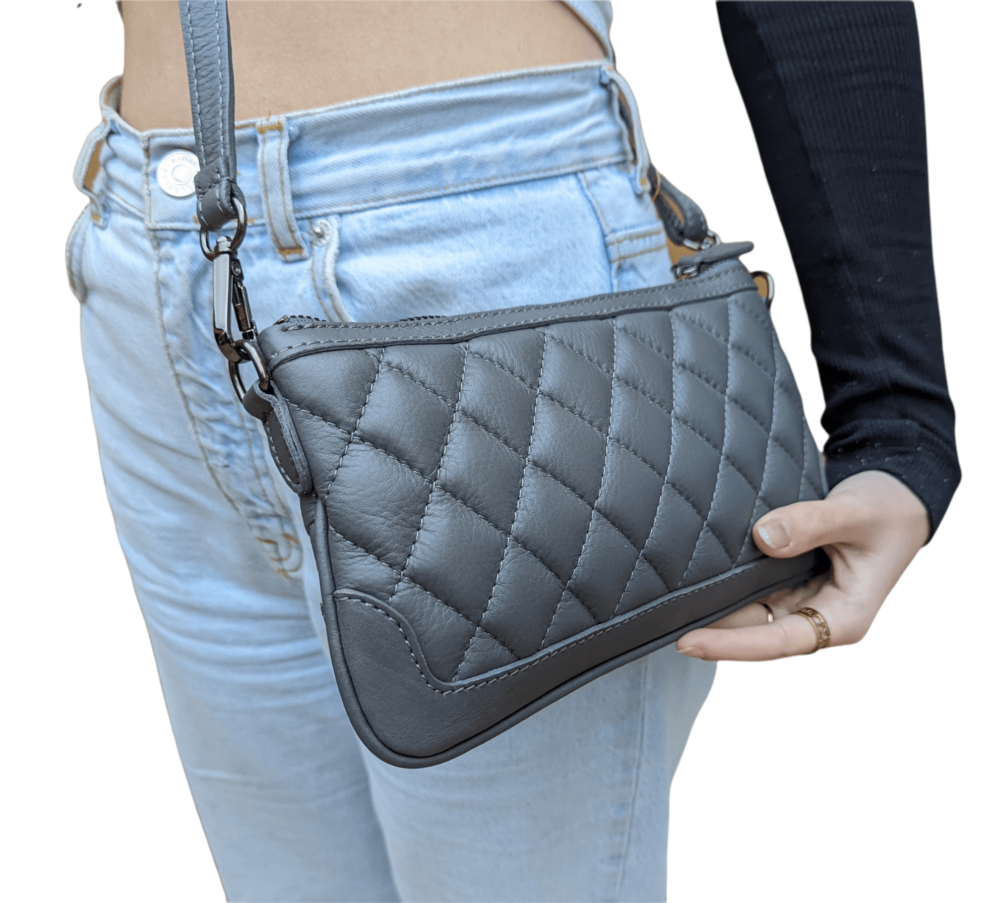 Italian Designer Leather Quilted Clutch Crossbody – Swolit Paxe Dark Grey