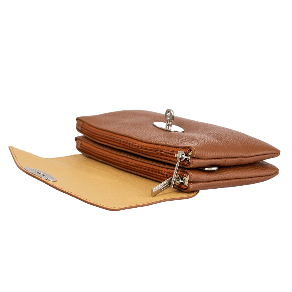 Leather Crossbody with Twin compartments and Twistlock bag Full Grain Leather Bag- Swolit