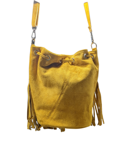 Italian Designer Soft Leather Suede Fringed Bucket Bag