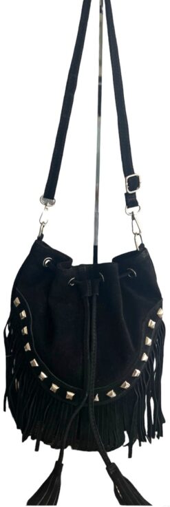 Italian Designer Soft Leather Suede Fringed Bucket Bag