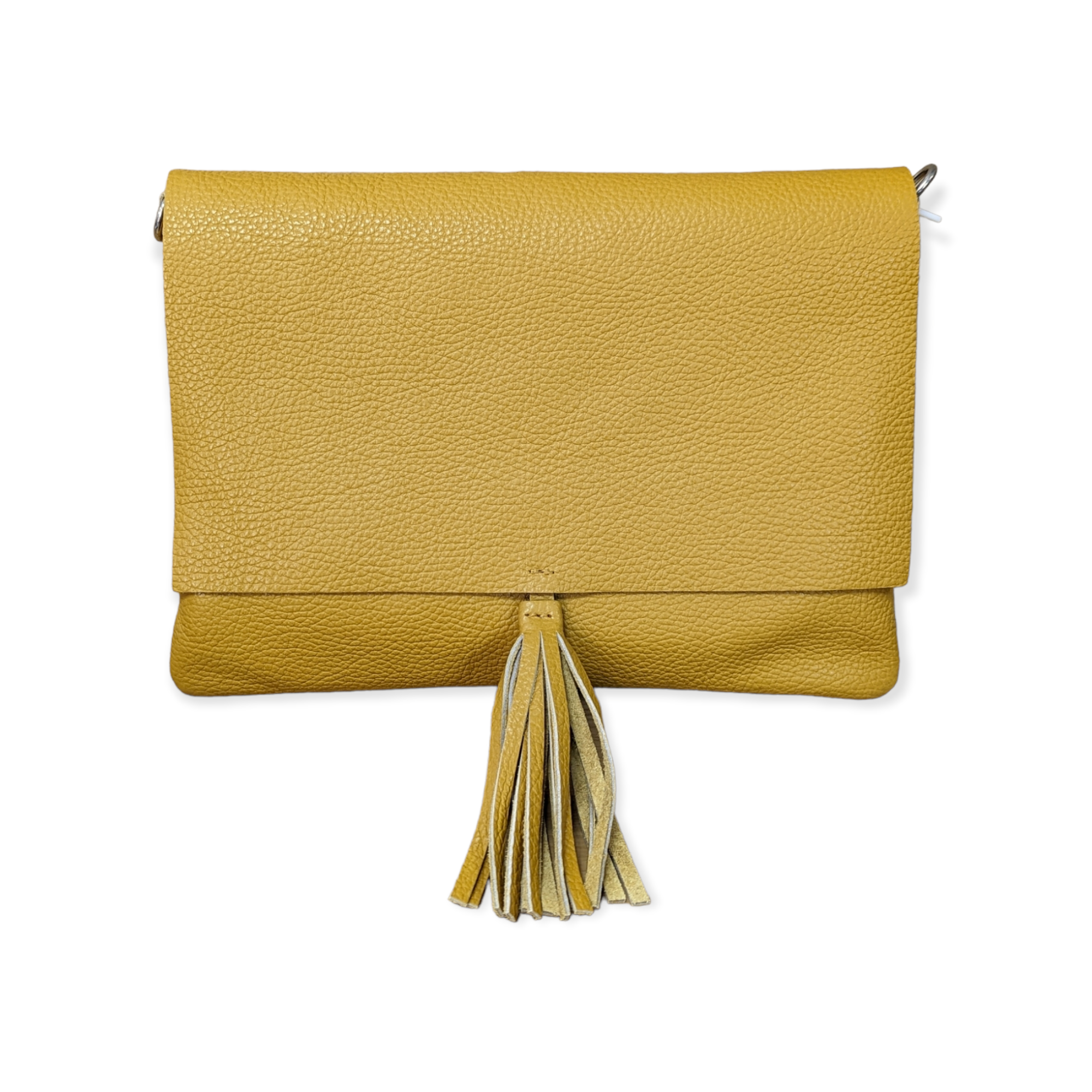Italian Fold over Leather Clutch Crossbody with Centre Tassel Bella Mustard SELLING FAST