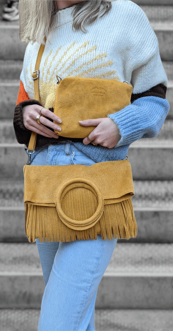 - Detachable long strap, which you can use with the handbag or the small bag inside