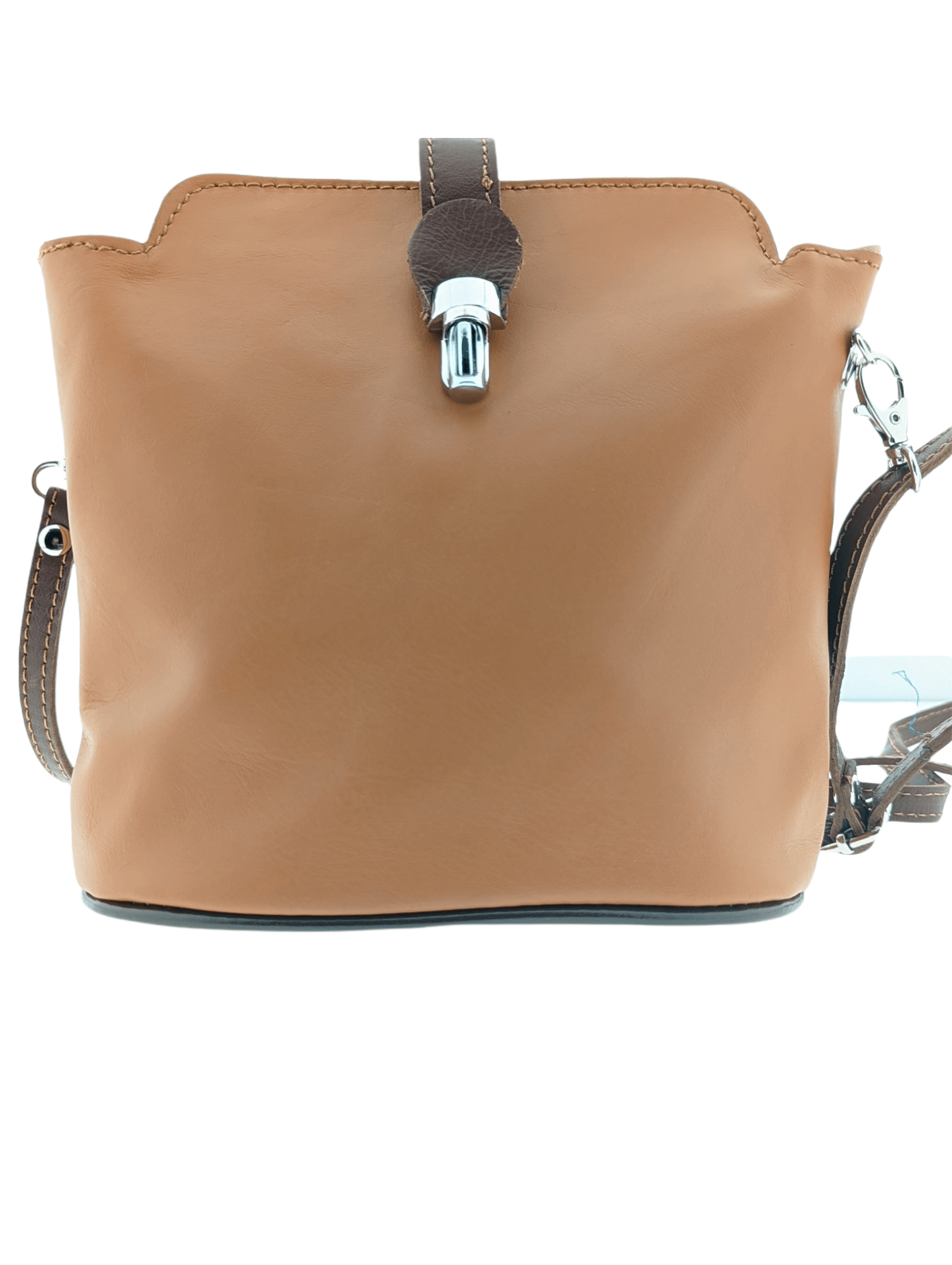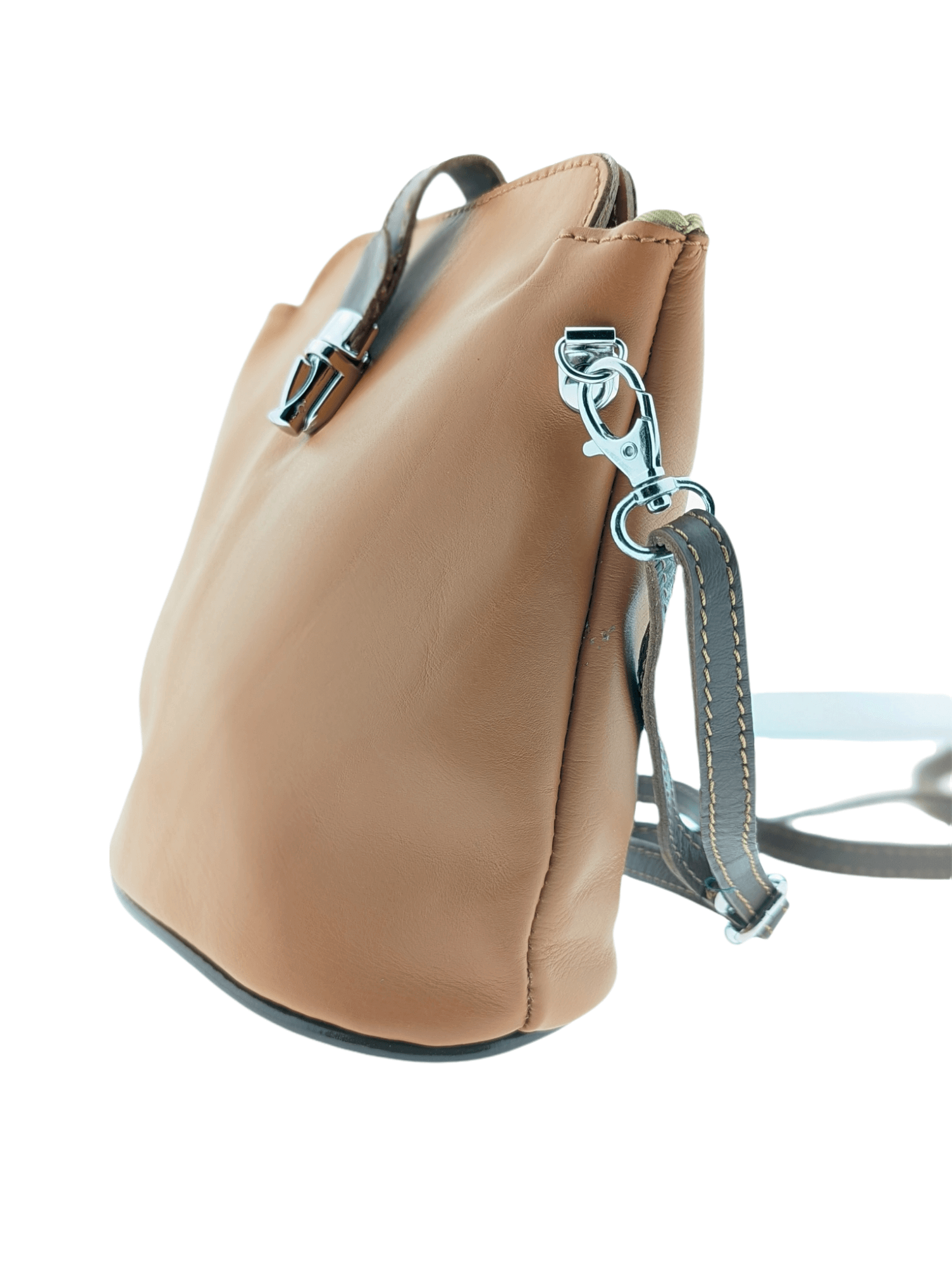 Italian Leather Crossbody Bag with Zip Pocket- Spalle Piccole- Tan