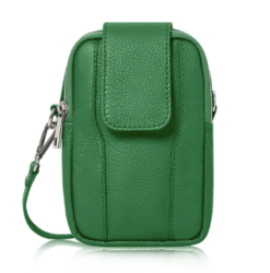 Description: Two-Pocket Portable Italian Leather Crossbody Bag Phone Bag with an Adjustable and Detachable Strap. Small Size and Lightweight but with a very Well-organized Structure, Enough Space for Essential Small Items. Strap Length (including clasps): 70-130cm; Outer Material: Italian Leather; Closure: Snap and Zipper; Hardware Colour: Silver; 2 main Compartments with Zipper.
