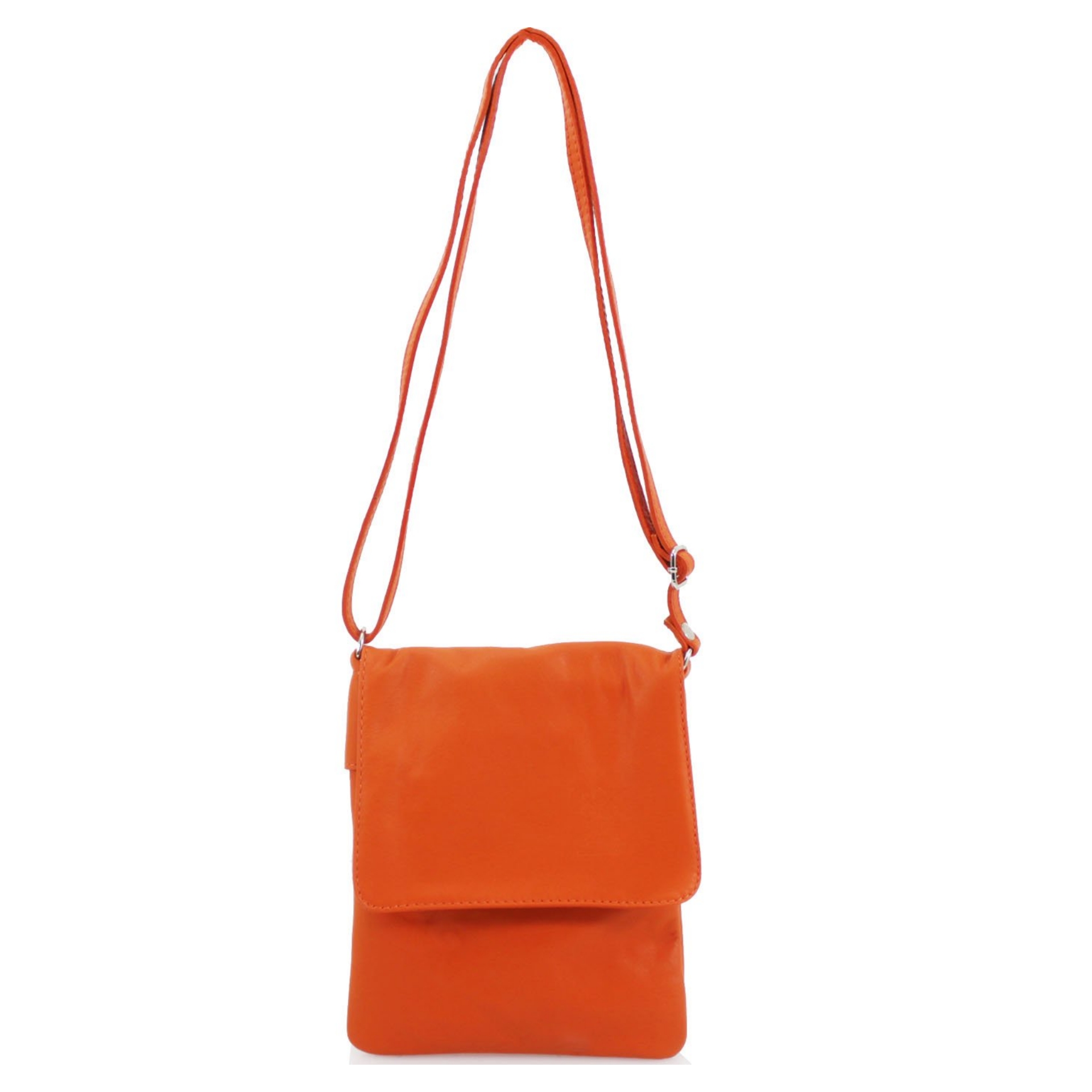 Italian Leather Flap Zip Crossbody- Nikki Orange
