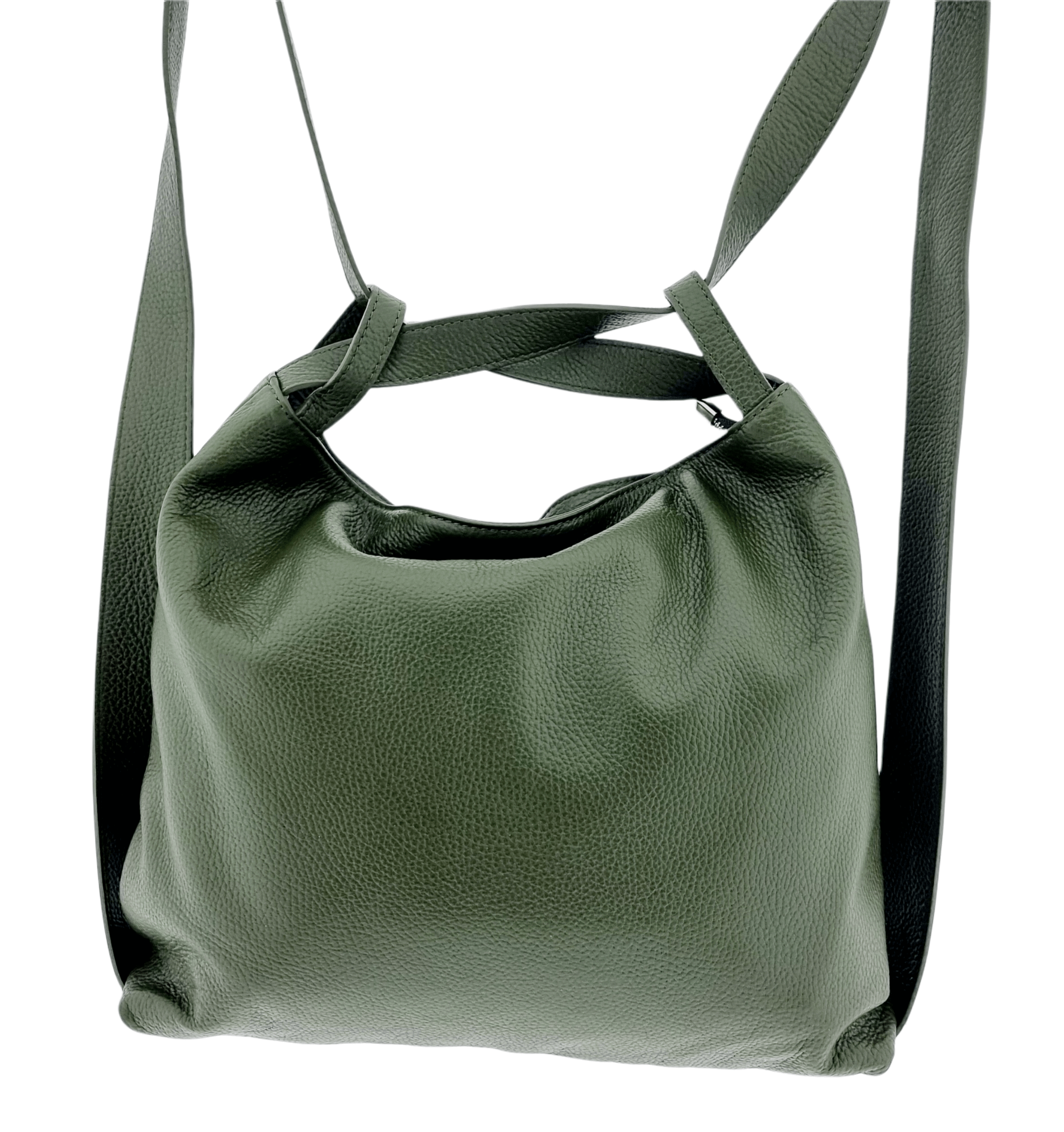 Italian Leather High Quality Large Leather Convertible Backpack -Ultimati- O Green