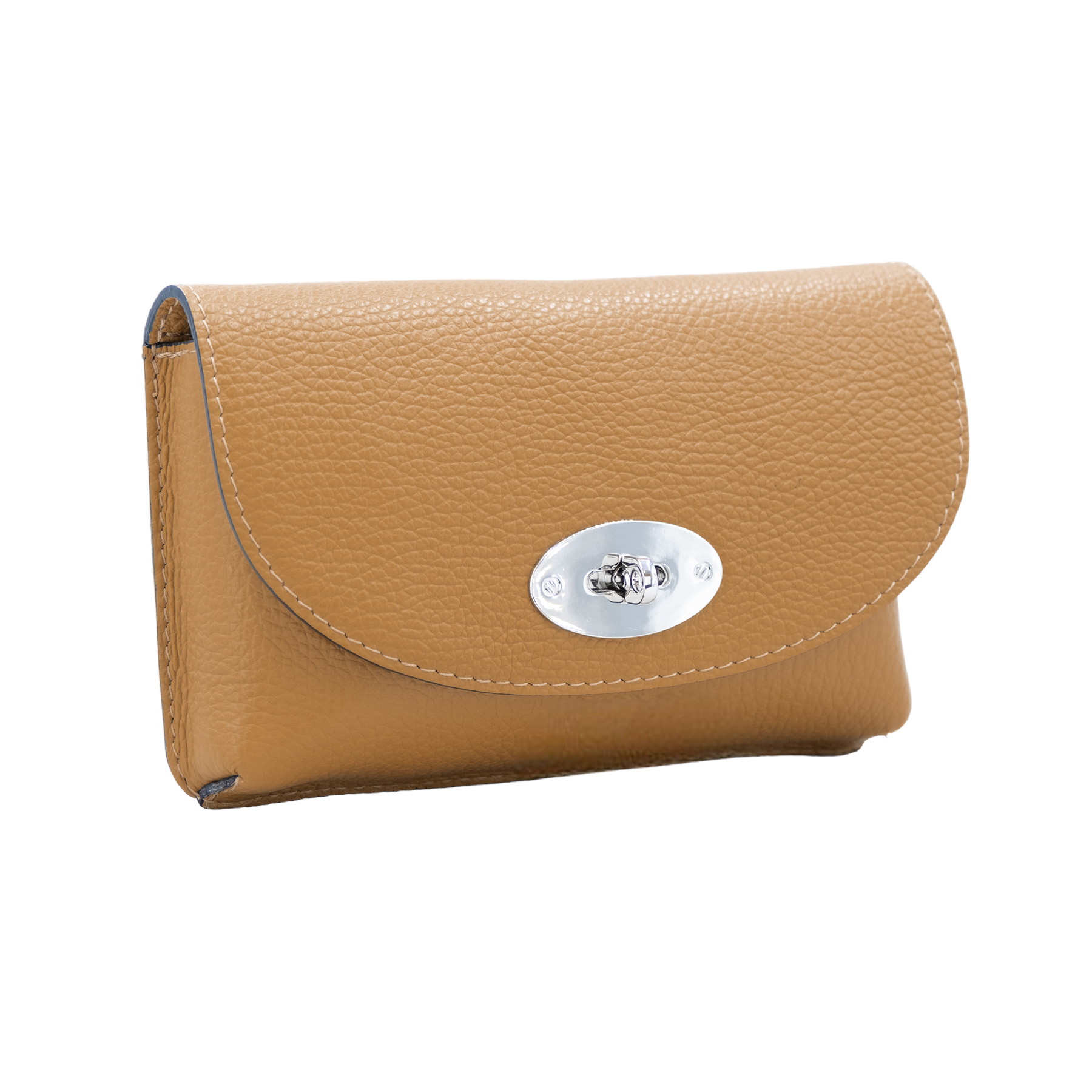 Italian Leather Mini Crossbody with Twistlock & Silver Chain Strap Celia Tan