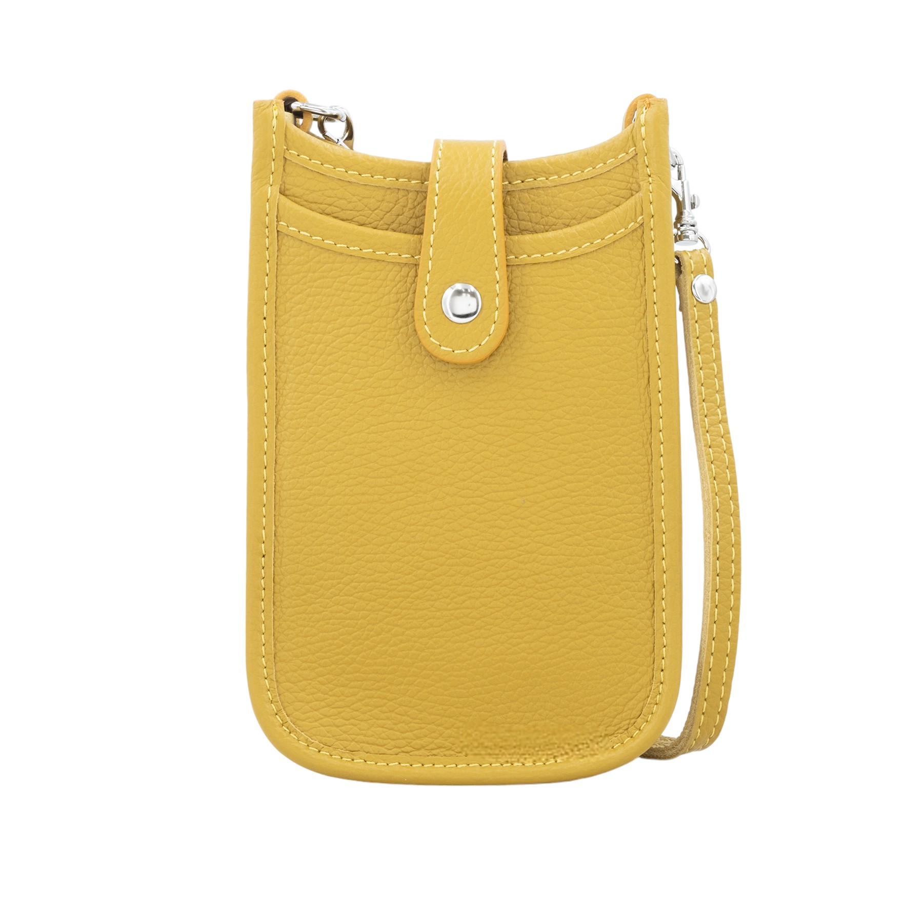 Italian Leather Phone Crossbody with Double Hem Mustard