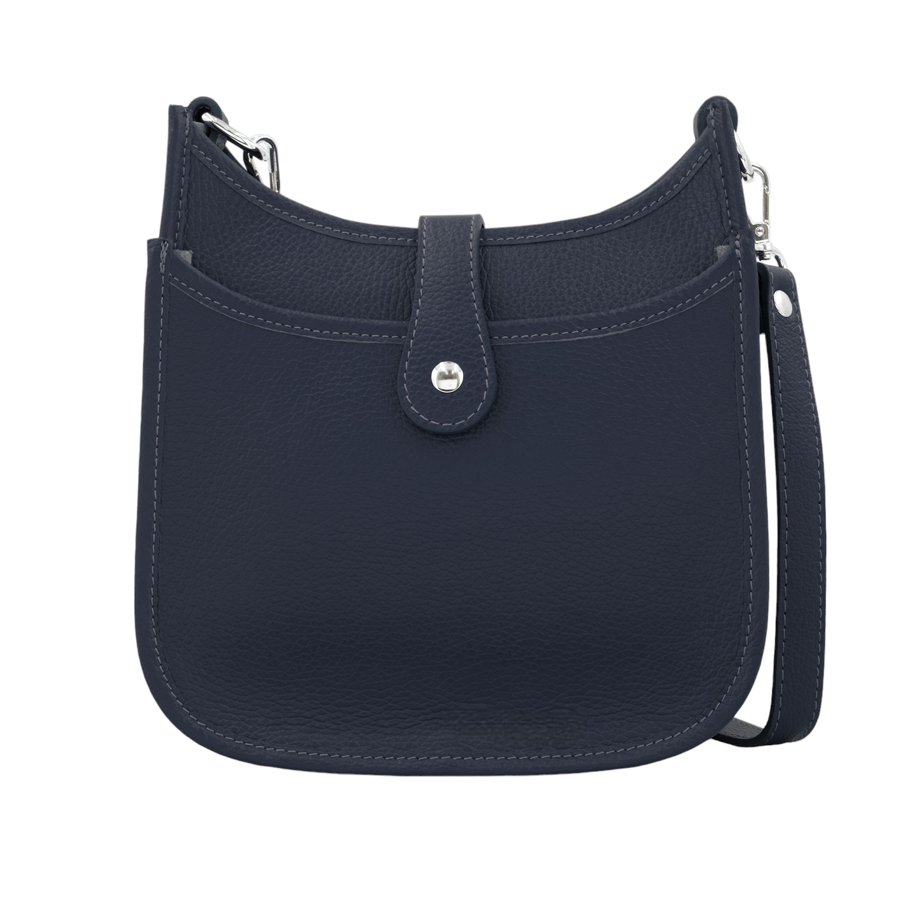 Italian Leather Shoulder Crossbody with Double Hem Detail Navy