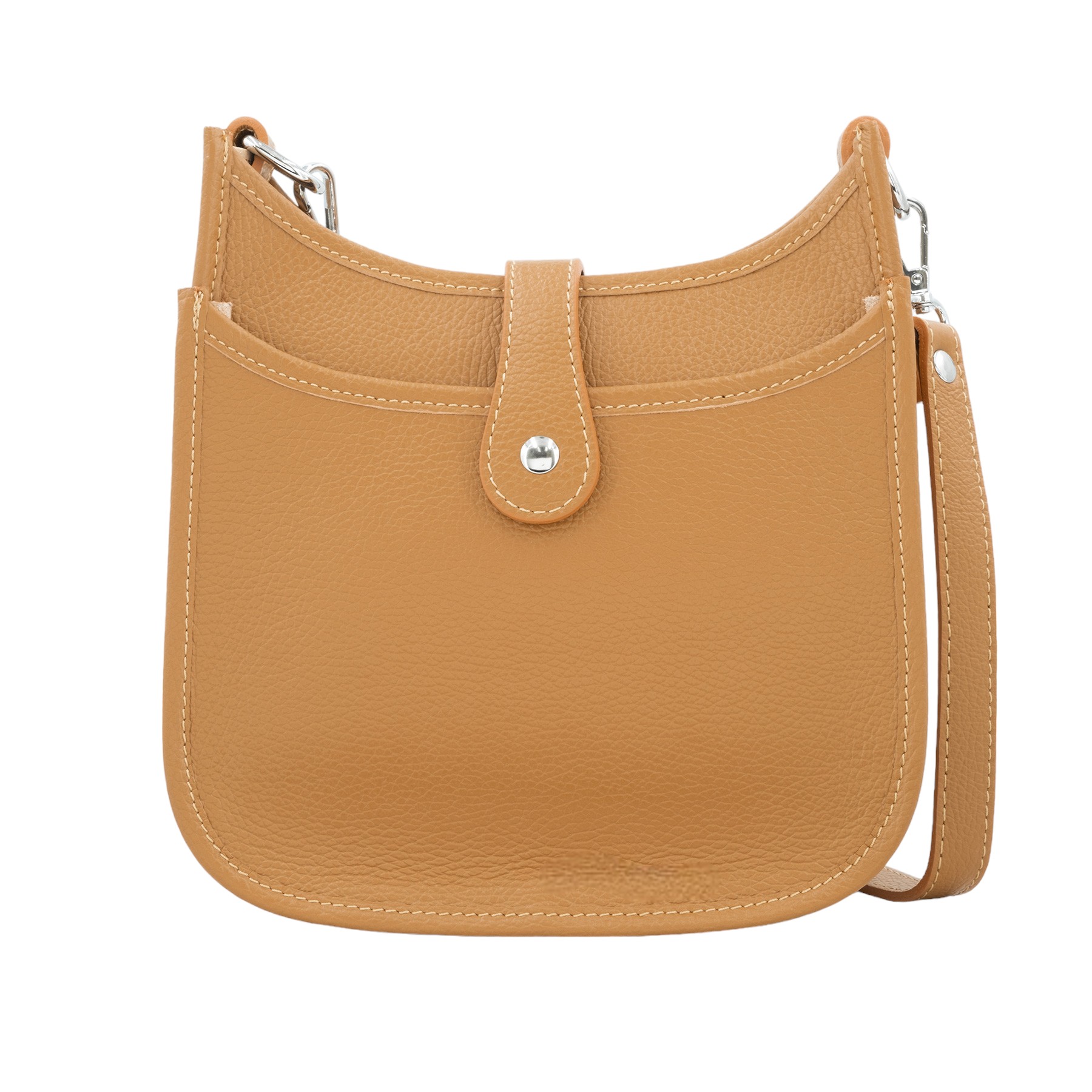 Italian Leather Shoulder Crossbody with Double Hem Detail Tan