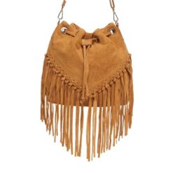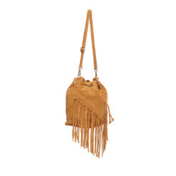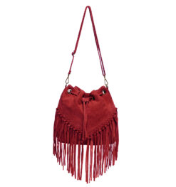 Italian Leather Suede Leather Fringed Bucket Bag Knott Detailing- Anna Dark Red