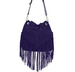 Italian Leather Suede Leather Fringed Bucket Bag Knott Detailing- Anna Navy
