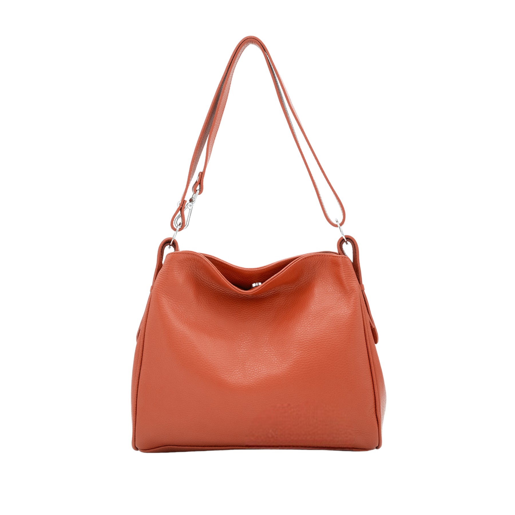 Italian Leather Two Compartments Handbag with Adjustable Strap Large Dark Orange