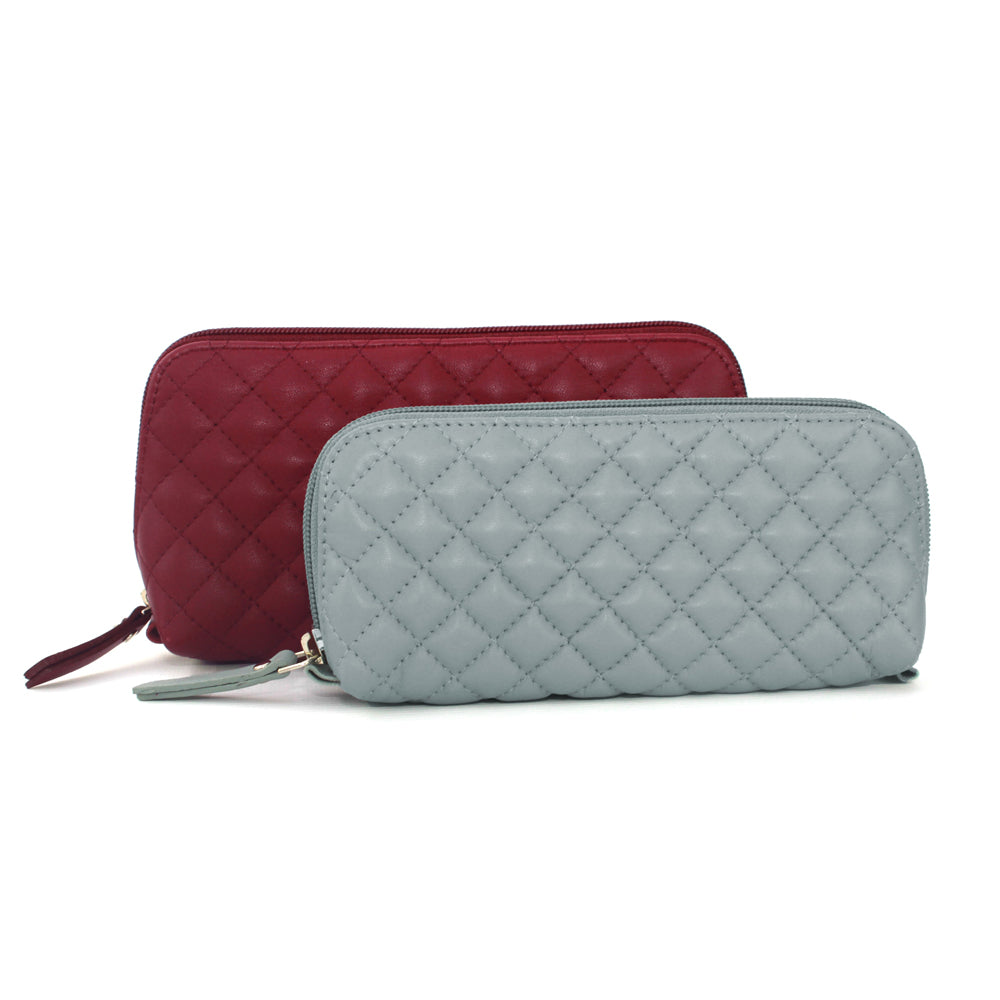 Leather Quilted Purse/Cosmetic Bags Twin pack, Very Berry / Grey