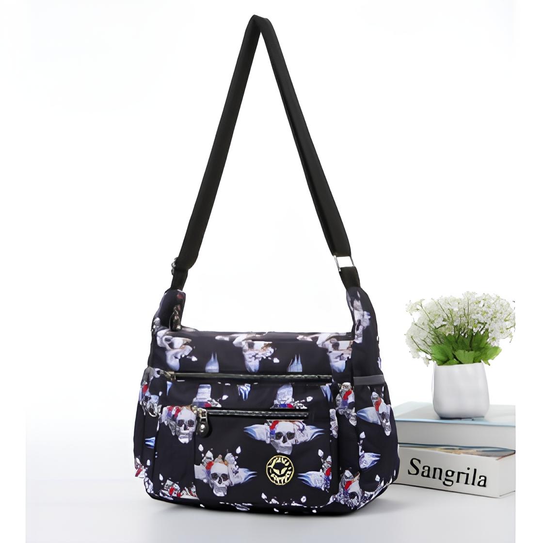 Navy Skull Wings All over Print Large Satchel Cross Body