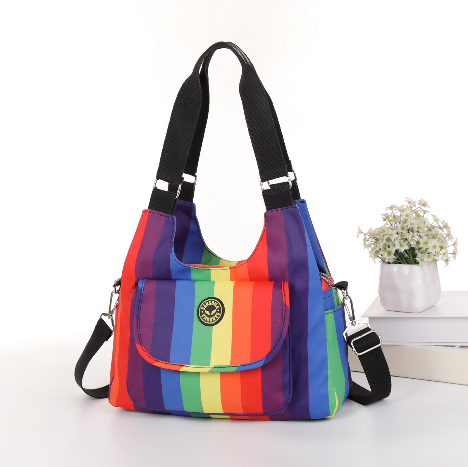 Rainbow Colours Cross Body Tote Shoulder Bag Multiple Zip Compartments