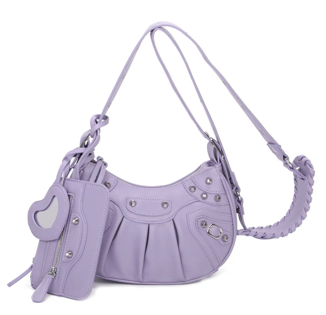 Studded Cross Body bag with Purse & Mirror