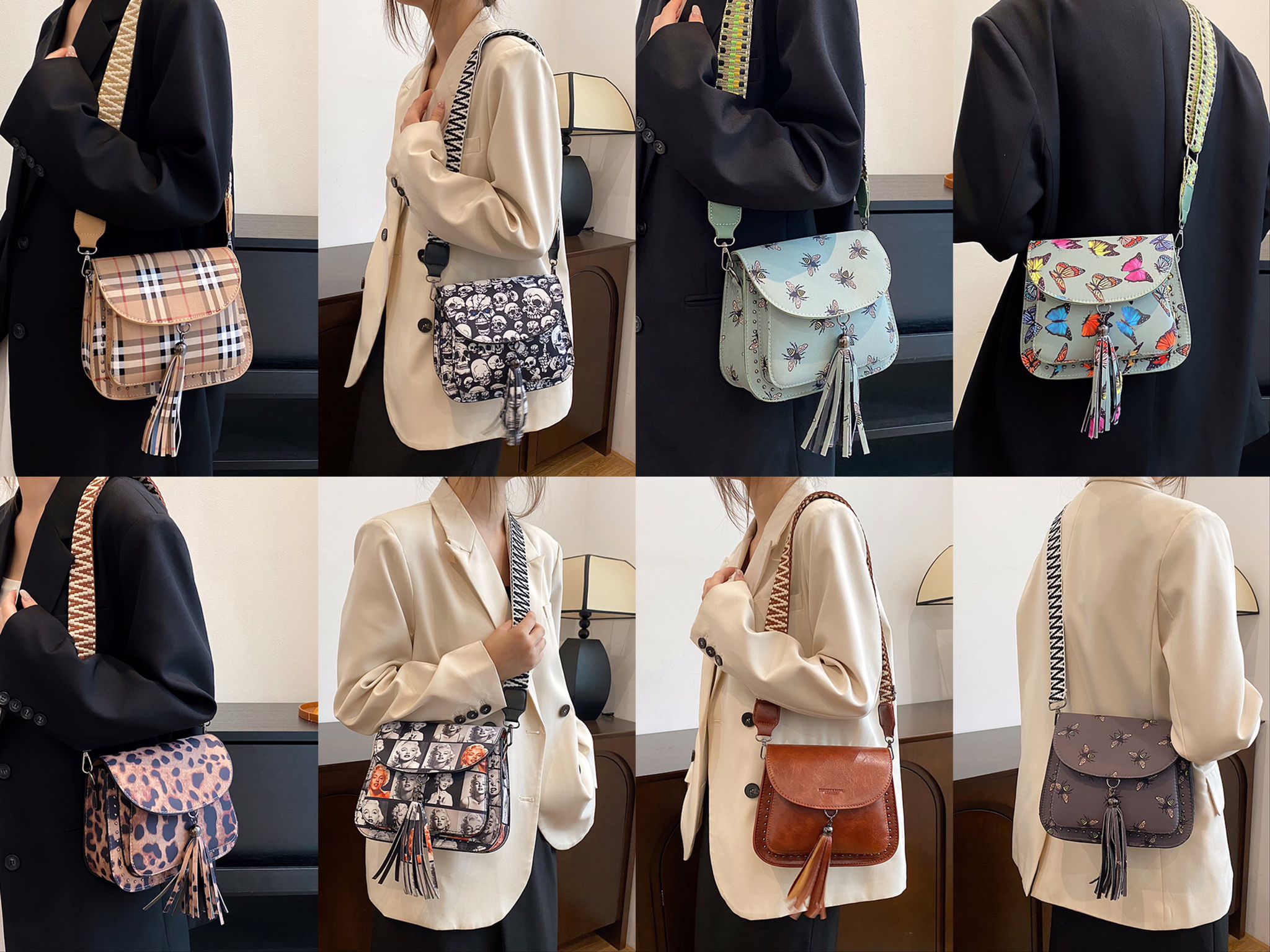 CrossBody Bag with Saddle Style With Tassel Stud