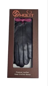 Womens Luxury Genuine so soft Leather Gloves Small bow Detailing- Black – Gift Boxed Last Few