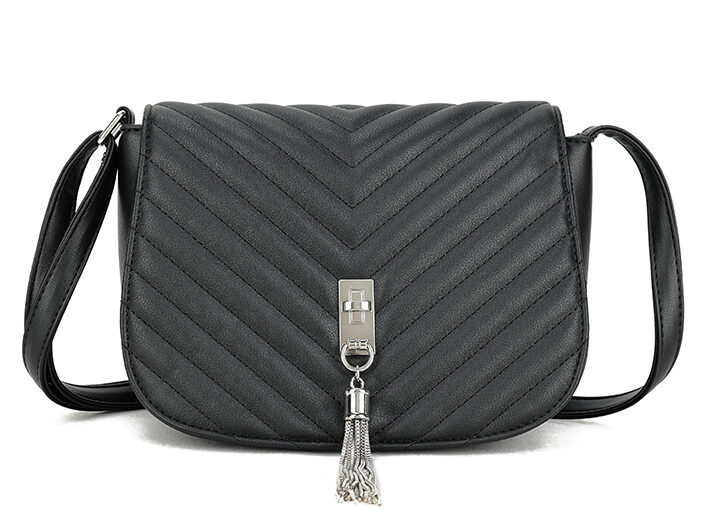 Yesselle Quilted Shoulder Bag with Silver Hardware Black
